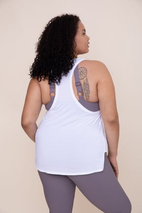 Cool-Touch Perforated Hi-Lo Racer Tank White w/ Pink Logo